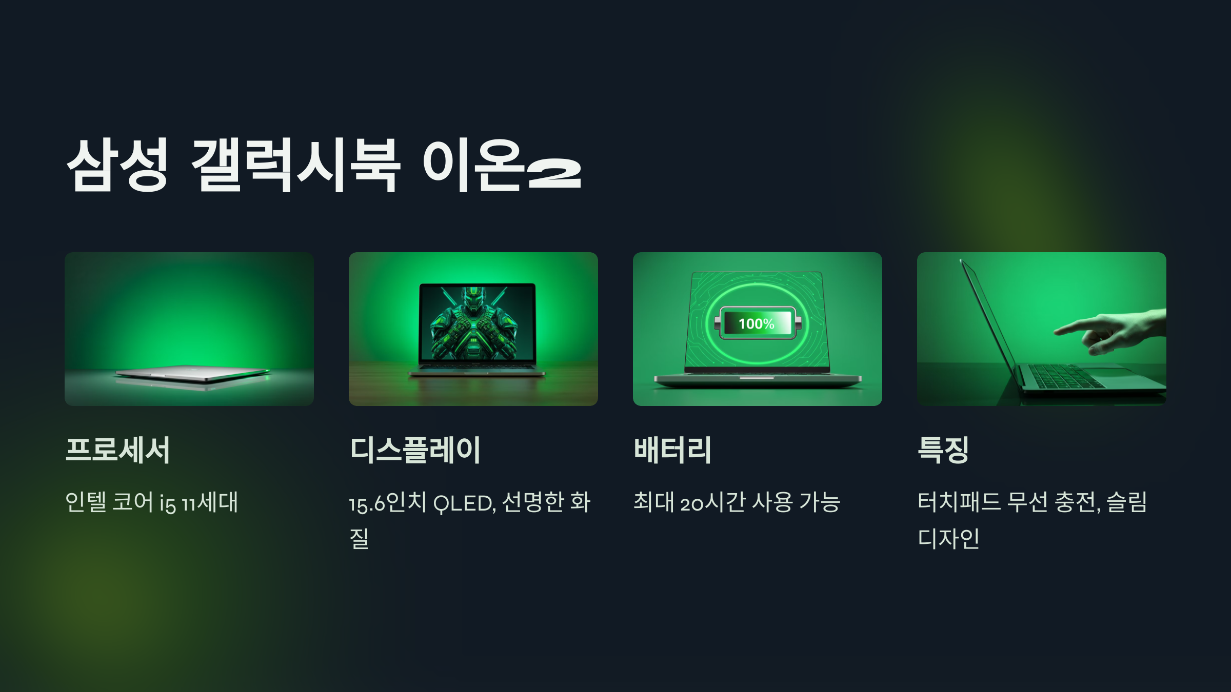 - QLED 디스플레이로 선명한 화질 제공