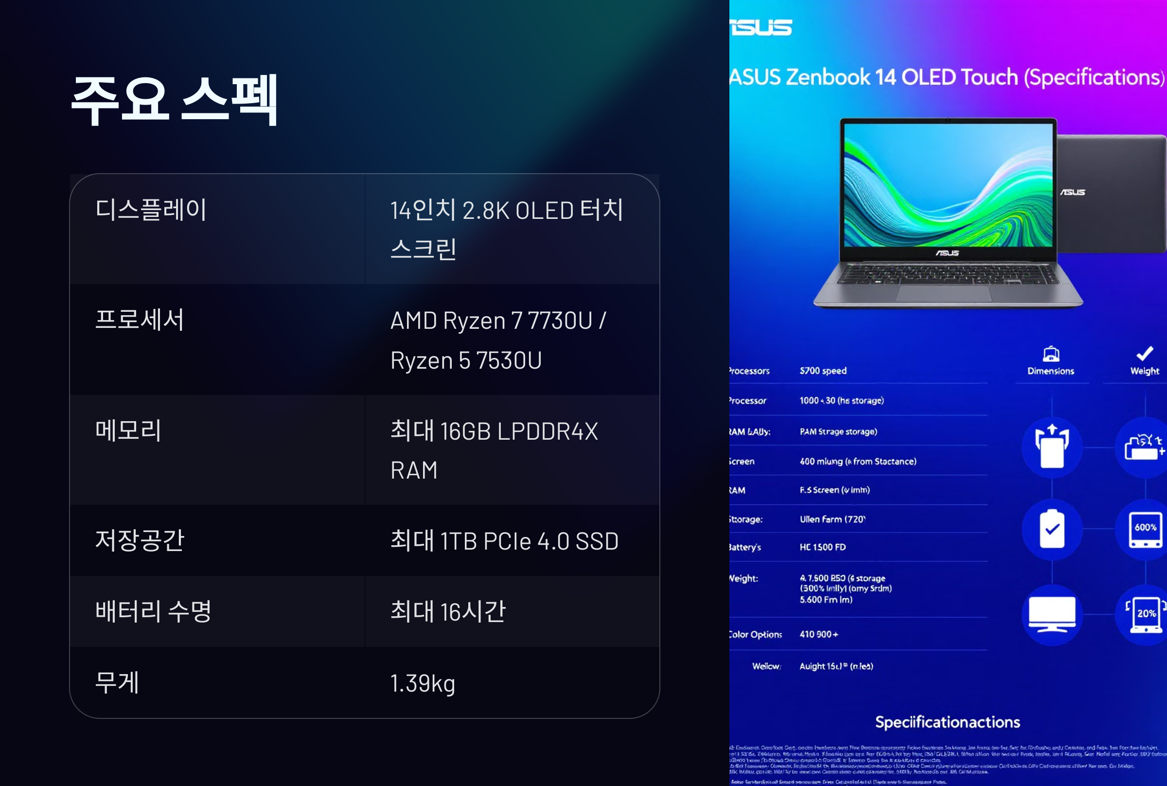 🌟 Asus Zenbook 14 OLED Touch (UM3406) 주요 스펙 한눈에 보기