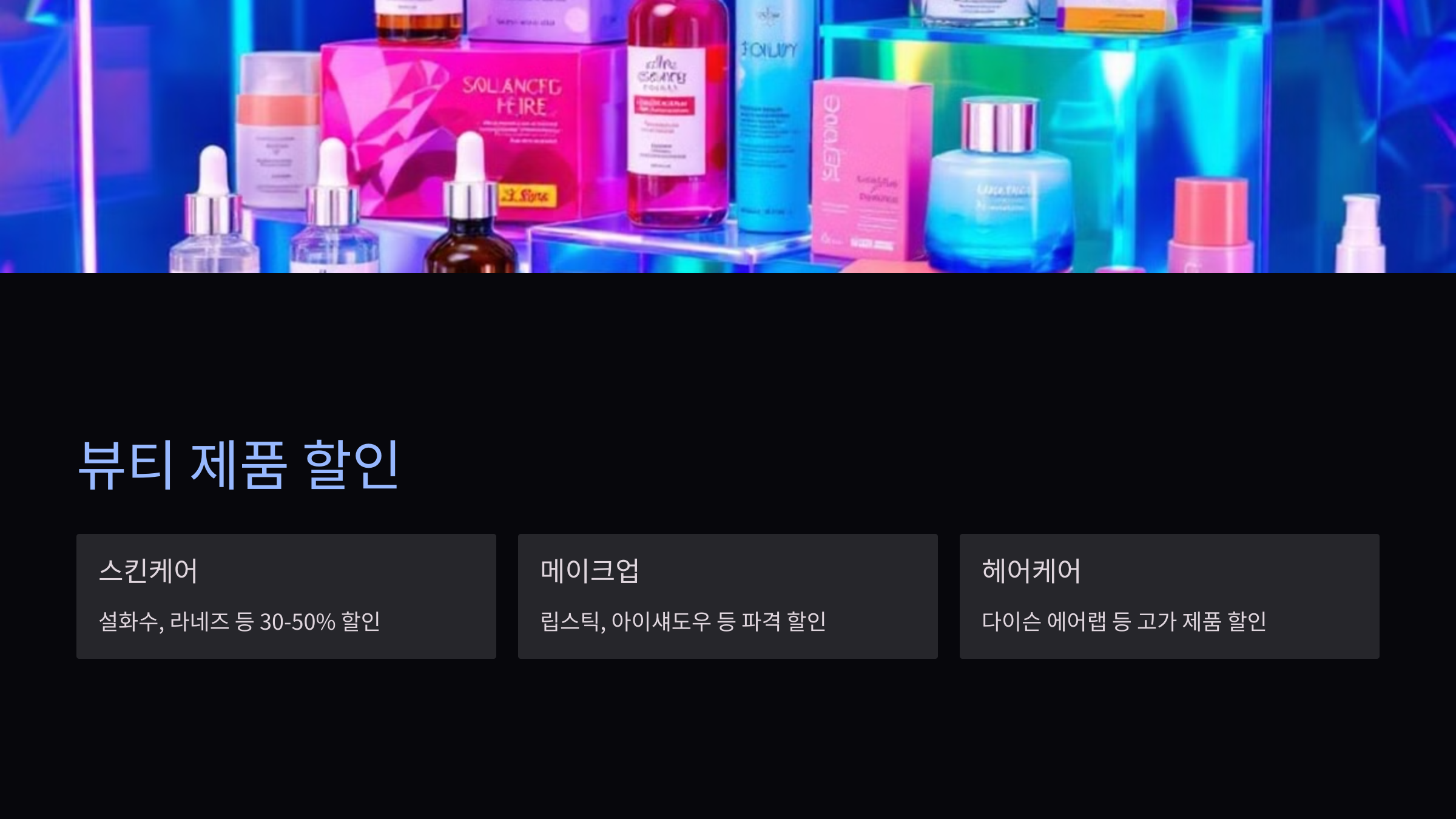 뷰티와 화장품 역시 코리아 세일 페스타에서 빠질 수 없는 인기 품목입니다. 다양한 스킨케어와 메이크업 제품들을 세일 가격으로 구매할 수 있습니다.