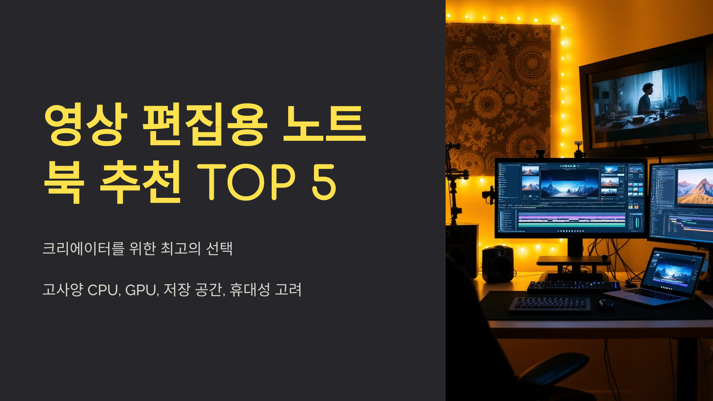오늘은 영상 편집에 최적화된 최고의 노트북 TOP 5를 소개해드립니다. 성능부터 휴대성까지 고려해 크리에이터 여러분이 어떤 환경에서도 효율적으로 작업할 수 있도록 도와줄 모델들만 엄선했습니다.