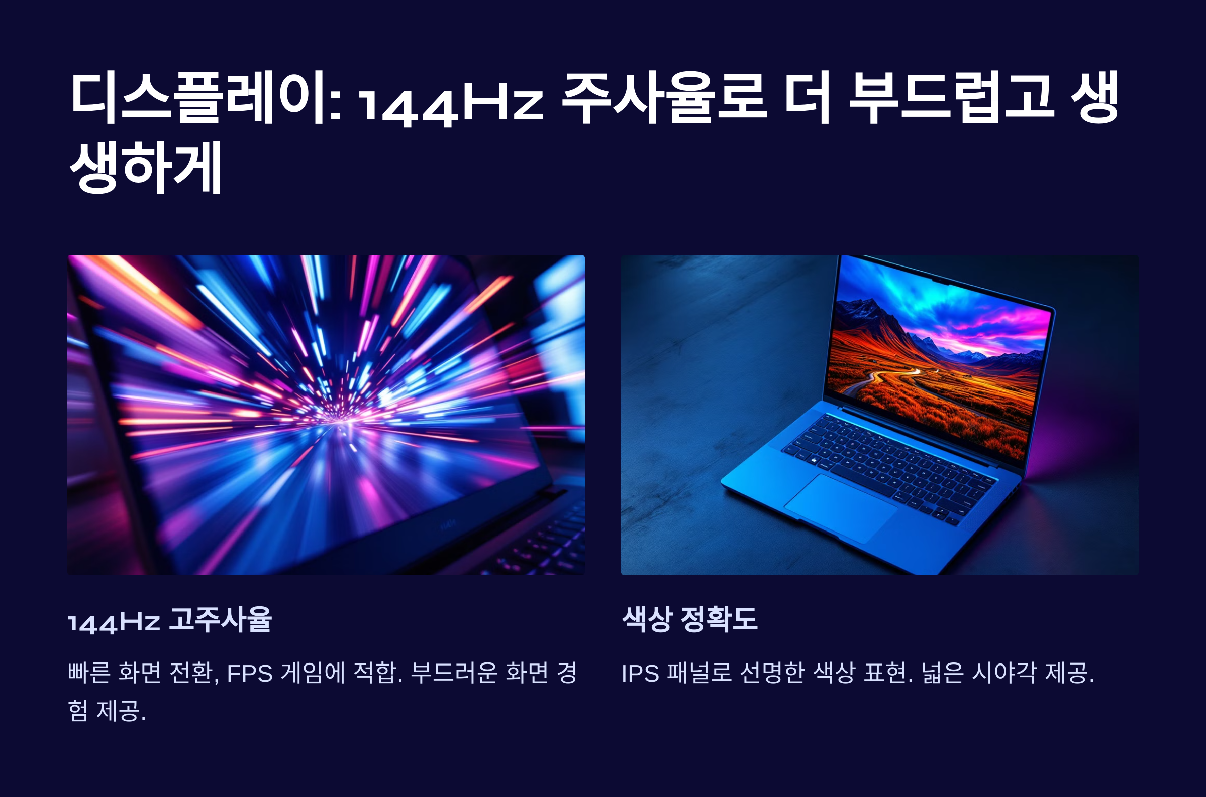 ✨ 디스플레이: 144Hz 주사율로 더 부드럽고 생생하게