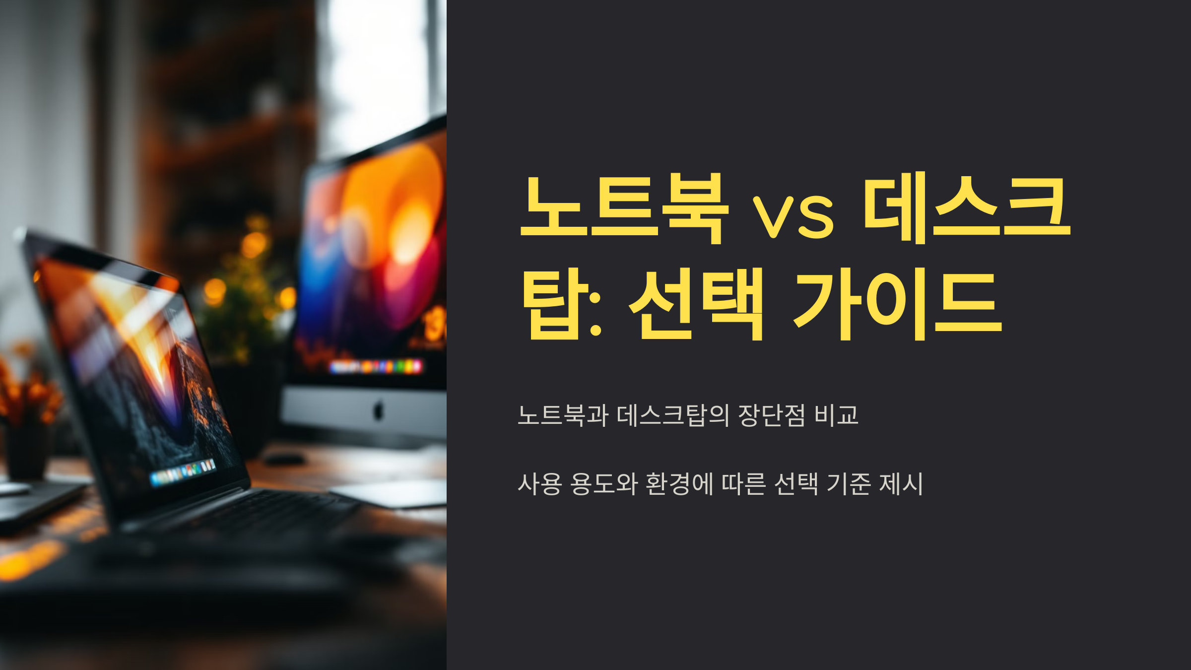 오늘은 노트북과 데스크탑의 장단점, 적합한 사용자, 주요 선택 기준을 비교하여, 여러분이 현명한 결정을 내릴 수 있도록 도와드리겠습니다!