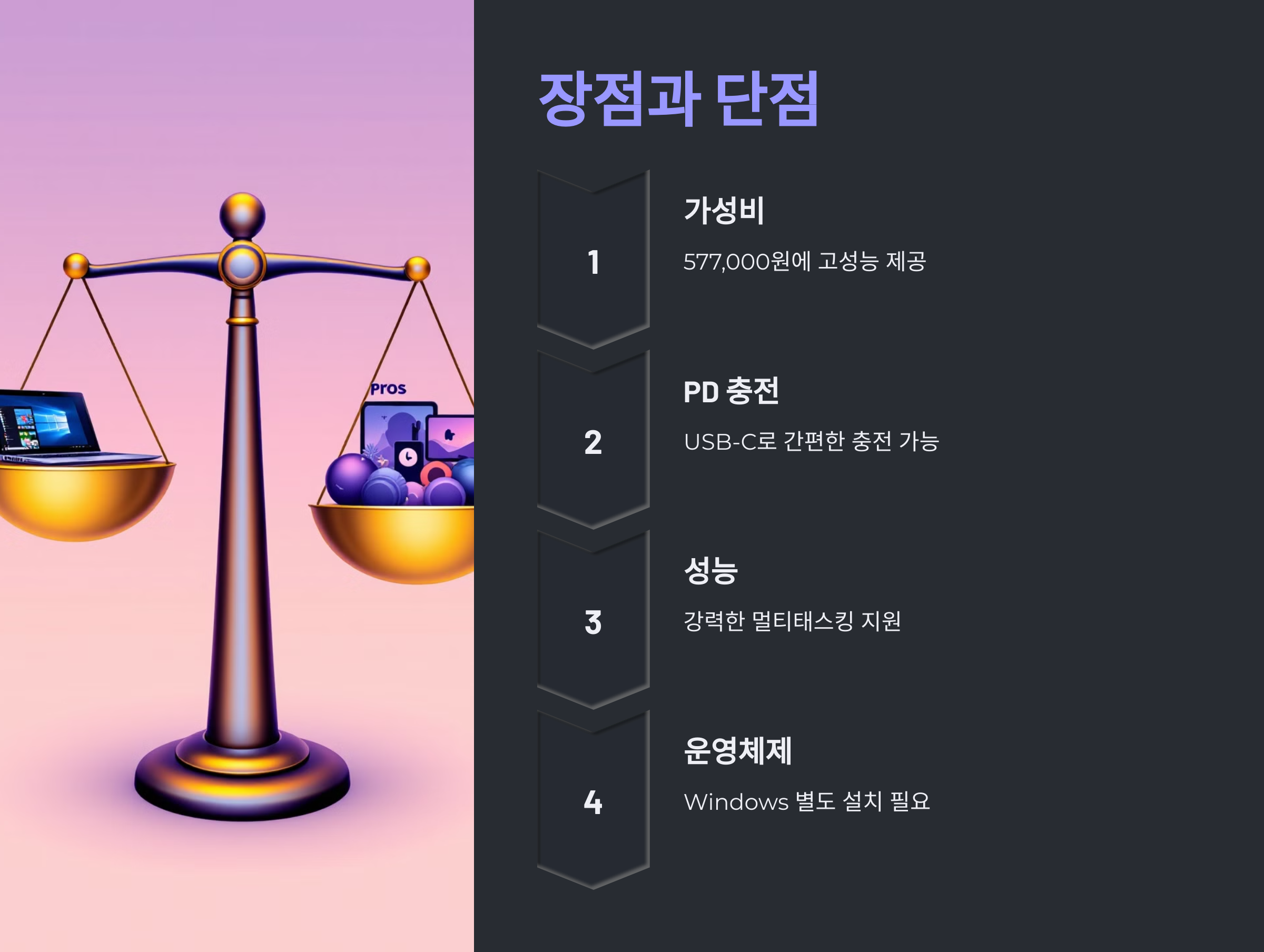 - 저장공간 부족 가능성: 256GB SSD는 대용량 데이터 저장에는 부족할 수 있음.
