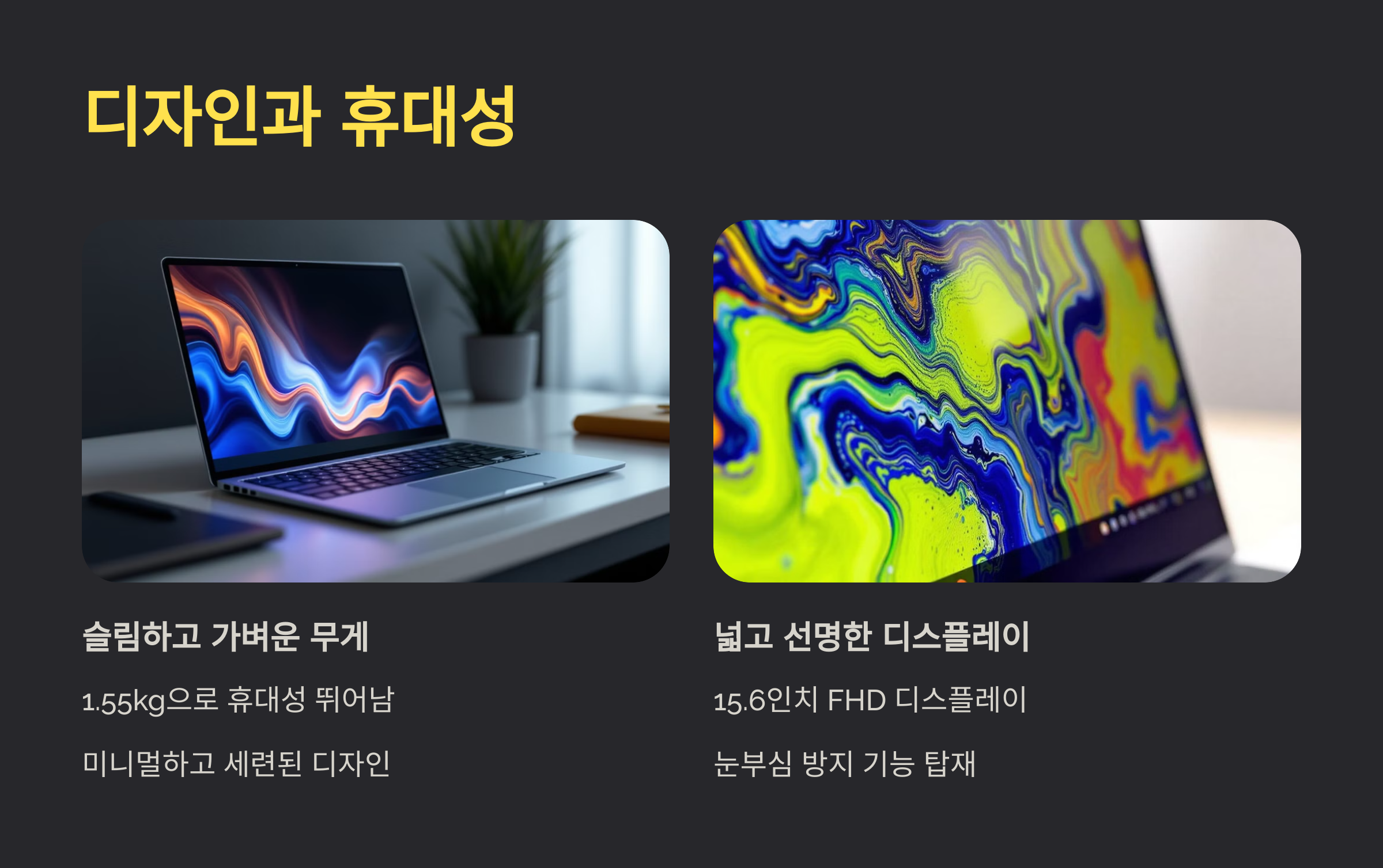 ✨ 디자인과 휴대성: 가볍고 세련된 노트북
