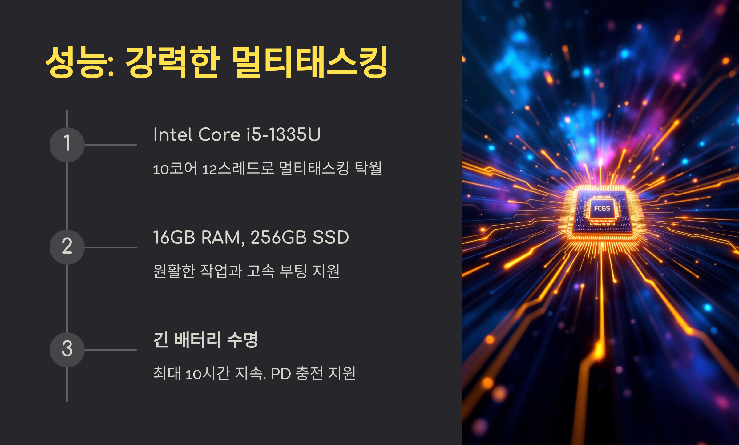 🔥 성능: 인텔 i5-1335U로 강력한 멀티태스킹 가능