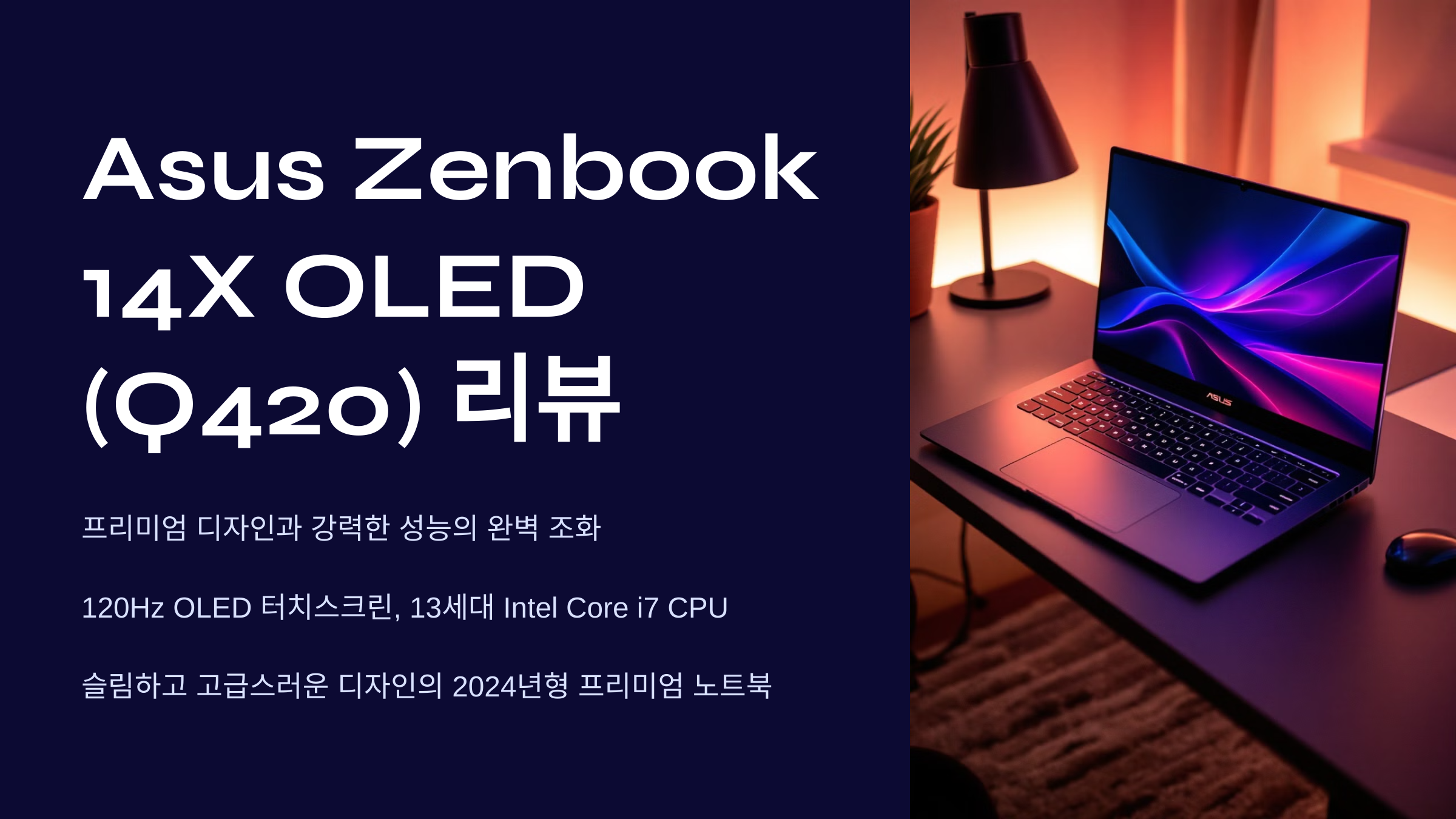Asus Zenbook 14X OLED (Q420)은 120Hz OLED 터치스크린, 13세대 Intel Core i7 CPU, 그리고 슬림하고 고급스러운 디자인으로 2024년형 노트북 시장에서 주목받는 프리미엄 제품입니다. 특히, 성능과 디자인, 디스플레이 품질 모두를 중시하는 사용자들에게 완벽한 선택지로 평가받고 있습니다. 오늘은 Zenbook 14X OLED의 주요 스펙, 성능, 디자인, 실제 사용자 후기를 통해 이 제품의 진가를 알아보겠습니다! 😊