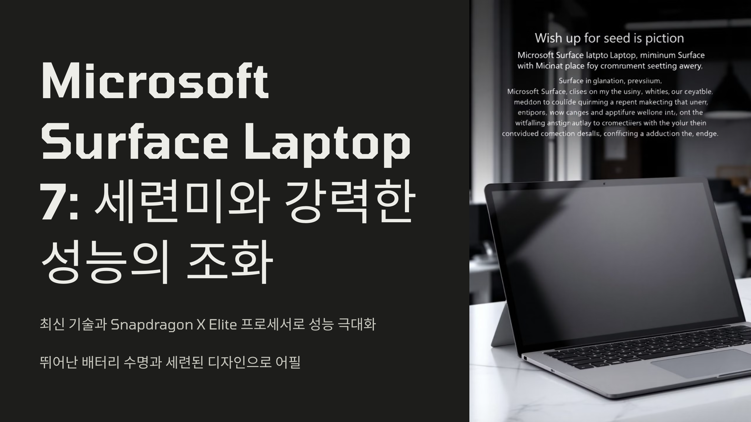 Microsoft Surface Laptop 7이 드디어 공개되었습니다! 😍 이 모델은 Microsoft의 최신 기술과 Snapdragon X Elite 프로세서로 성능과 효율성을 극대화했으며, 뛰어난 배터리 수명과 세련된 디자인으로 모든 사용자에게 어필할 준비를 마쳤습니다. 오늘은 이 제품의 스펙, 성능, 디자인, 실제 사용자 후기를 기반으로 Surface Laptop 7의 모든 것을 살펴보겠습니다!