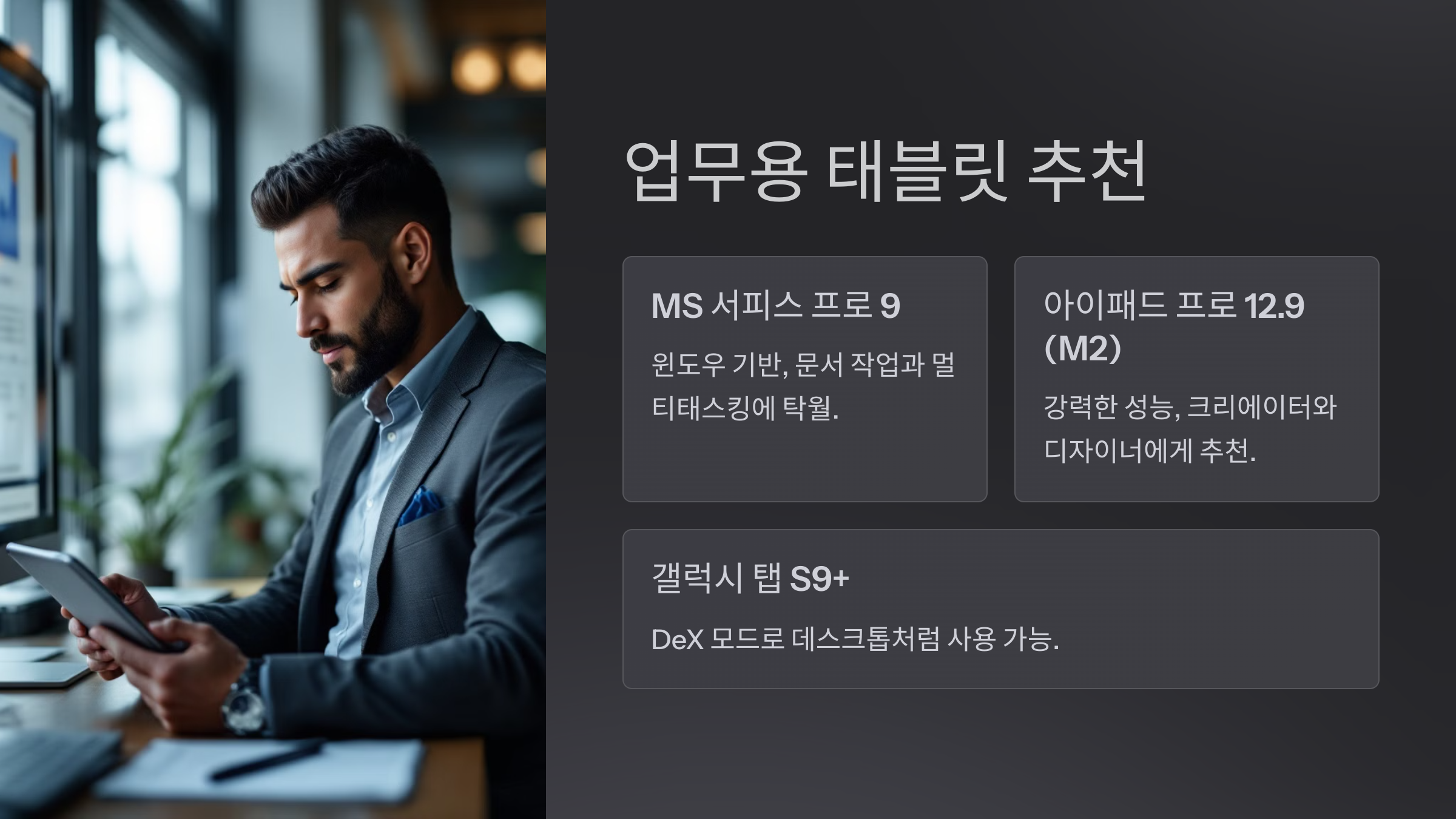 2️⃣ 업무용 태블릿 추천: 생산성의 극대화 🖥️💼