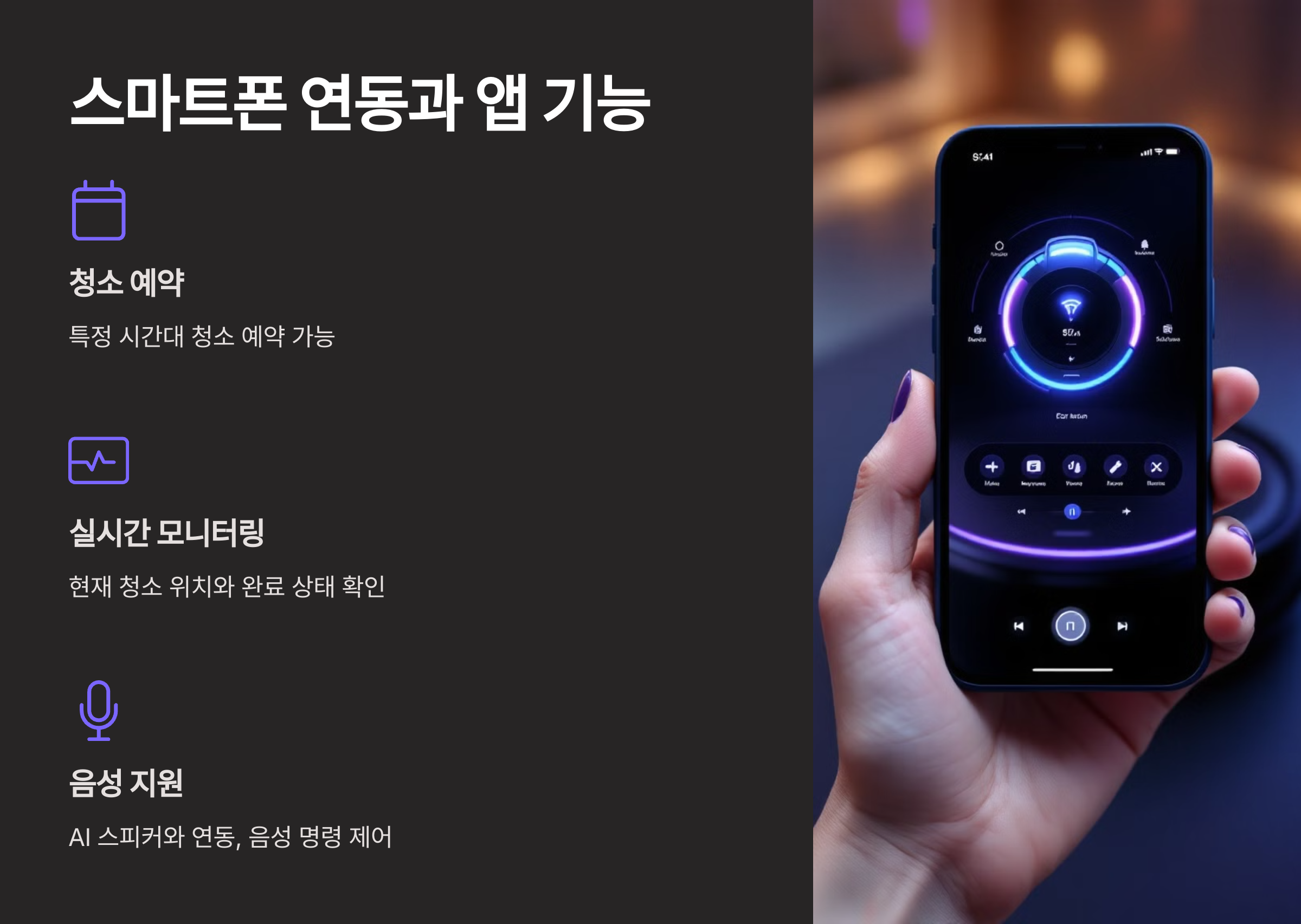 - 청소 예약 기능: 특정 시간대에 청소를 예약할 수 있으면 매우 편리합니다.